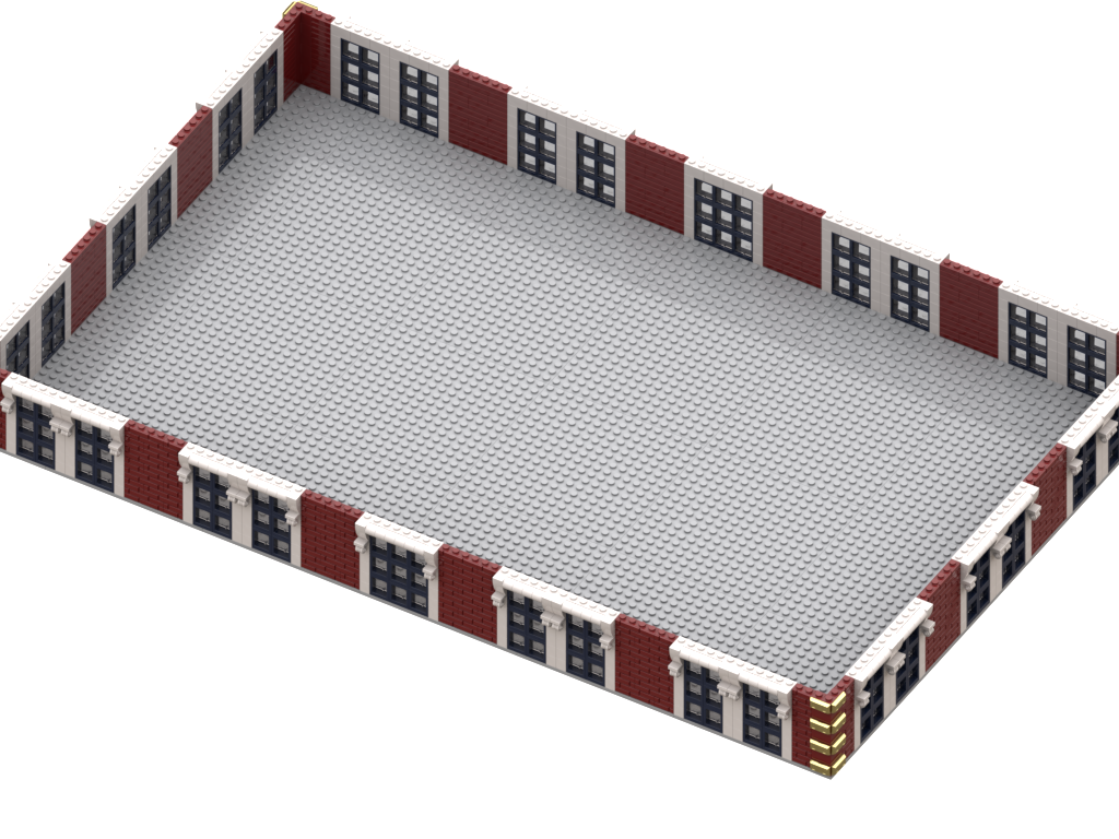Das erste, das ich festgelegt habe ist die Größe. Eine Universität sollte natürlich schon ein großes Gebäude sein. Deshalb legte ich eine Größe von 96 x 64 Noppen fest (ca. 75 x 50 cm). Das Gebäude selbst wird etwas kleiner. Hier nun die Basis mit der ich Anfange: